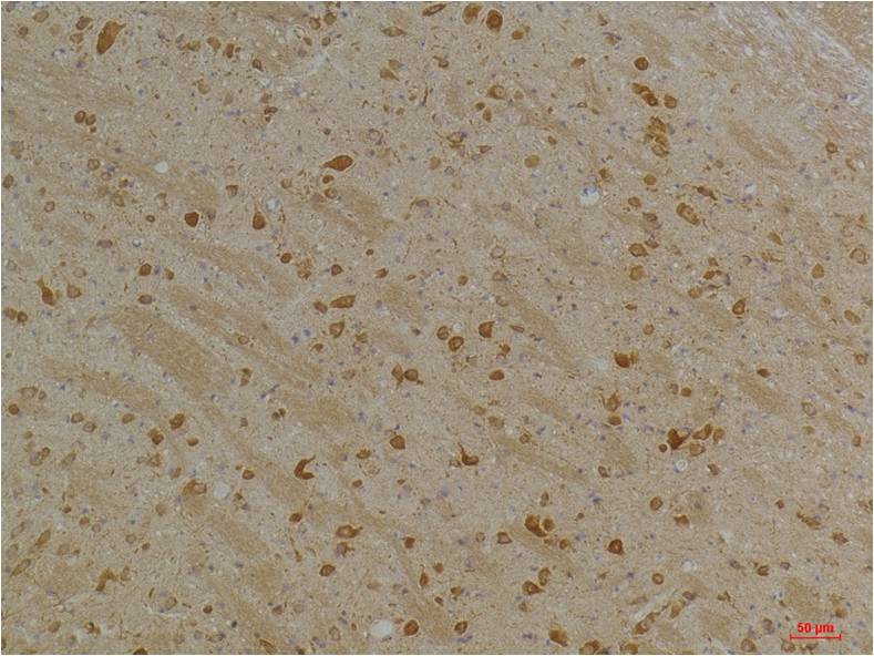 Immunohistochemical analysis of paraffin-embedded Rat BrainTissue using?Kv10.2 (EA312)Rabbit pAb diluted at 1:200.