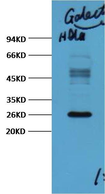 Galectin 3 is one of the more extensively studied members of this family and is a 30 kDa protein. Due to a C-terminal carbohydrate binding site, Galectin 3 is capable of binding IgE and mammalian cell surfaces only when homodimerized or homooligomerized. Galectin 3 is normally distributed in epithelia of many organs, in various inflammatory cells, including macrophages, as well as dendritic cells and Kupffer cells. The expression of this lectin is up-regulated during inflammation, cell proliferation, cell differentiation and through trans-activation by viral proteins.