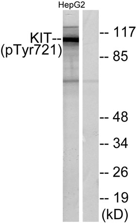 The antiserum was produced against synthesized peptide derived from human c-Kit around the phosphorylation site of Tyr721. AA range:688-737