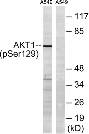 The antiserum was produced against synthesized peptide derived from human Akt around the phosphorylation site of Ser129. AA range:95-144