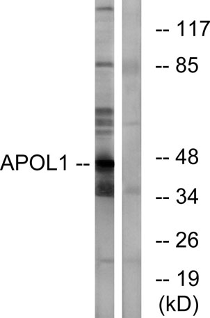 The antiserum was produced against synthesized peptide derived from human APOL1. AA range:261-310