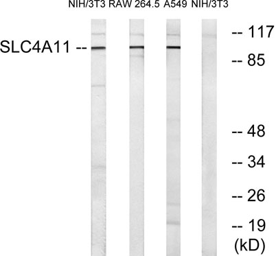 The antiserum was produced against synthesized peptide derived from human SLC4A11. AA range:291-340
