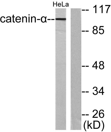 The antiserum was produced against synthesized peptide derived from human Catenin-alpha1. AA range:857-906
