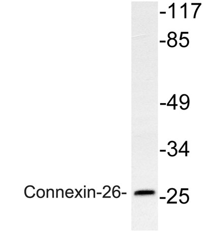 The antiserum was produced against synthesized peptide derived from human Connexin-26. AA range:45-94