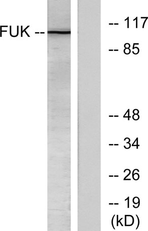 The antiserum was produced against synthesized peptide derived from human FUK. AA range:11-60