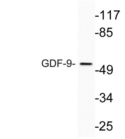 The antiserum was produced against synthesized peptide derived from human GDF-9. AA range:273-322