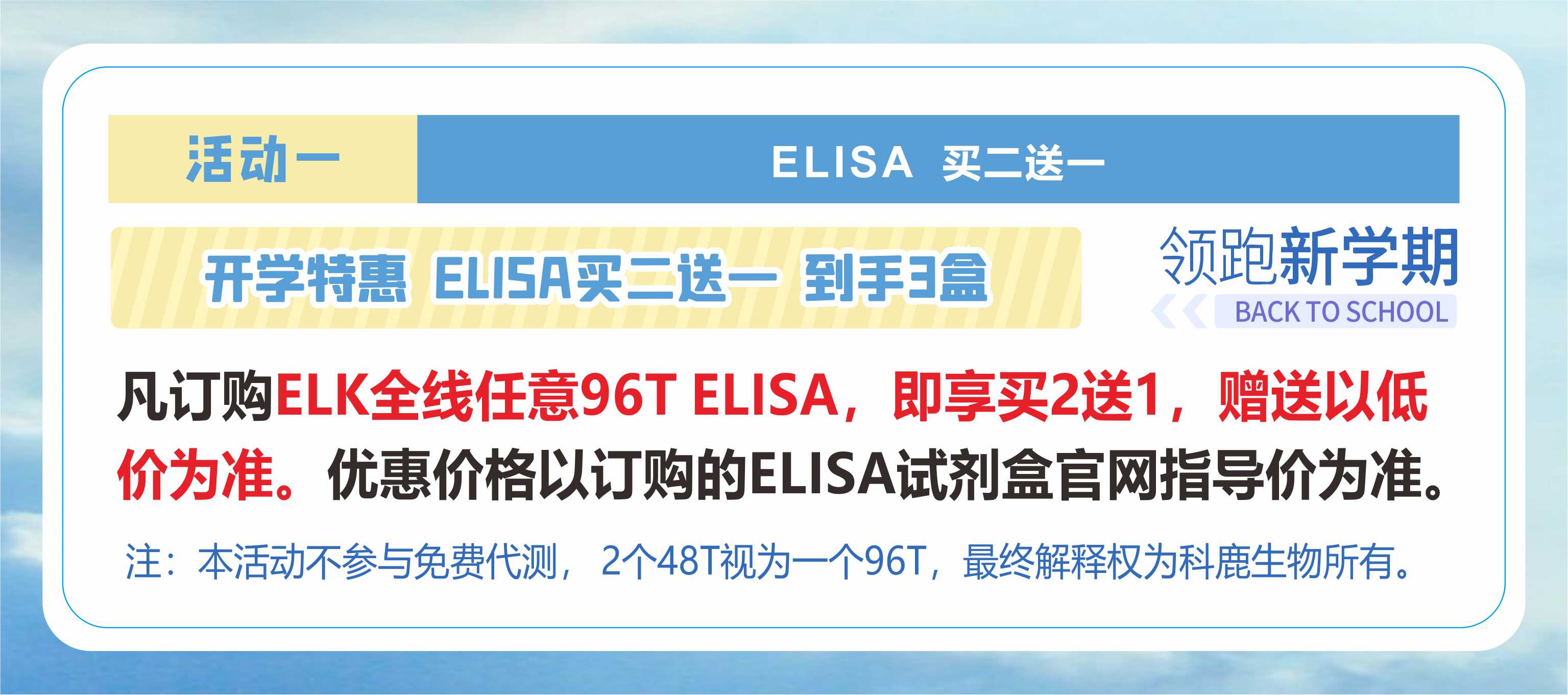 購買全系96T ELISA試劑盒,除了享受當期的促銷活動,