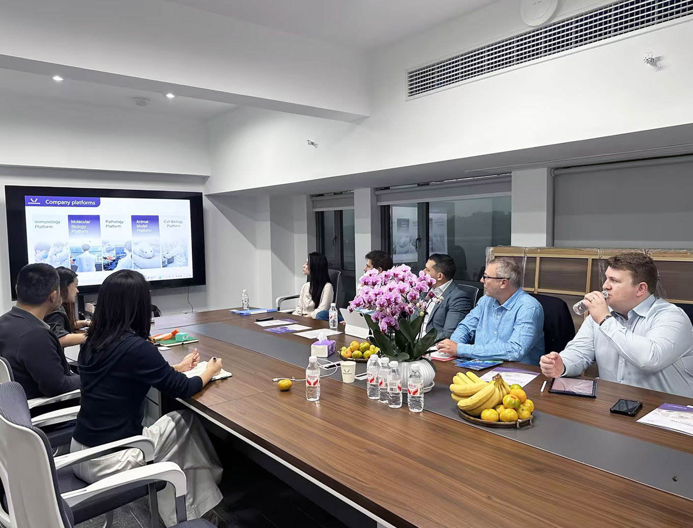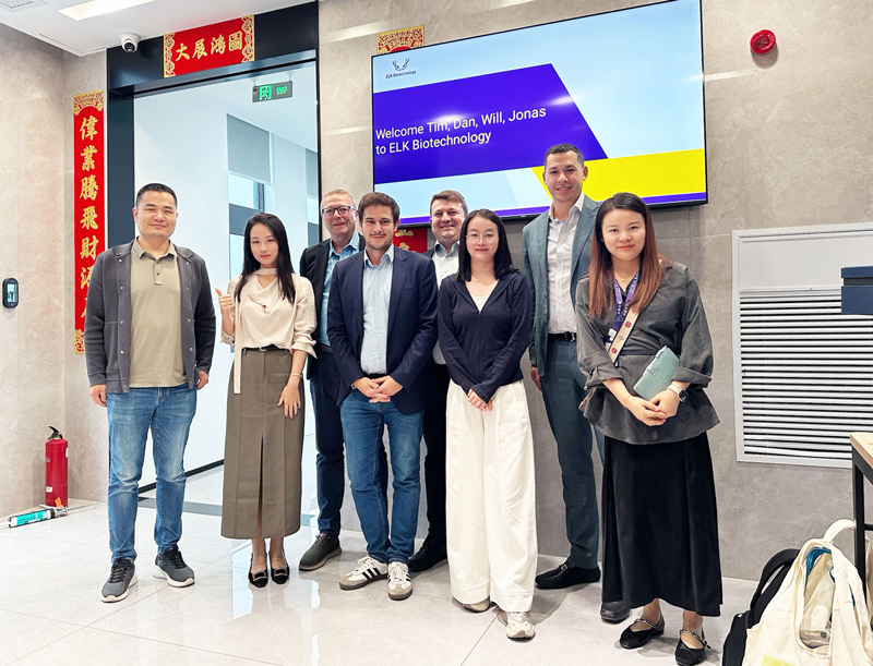 不久前,ELK 正式搬入這座規(guī)模宏大的 6000 平新實(shí)驗(yàn)室,此次客戶到訪,恰逢新實(shí)驗(yàn)室啟用后的首批客人拜訪,意義非凡。當(dāng)日,ELK的CEO夏總和銷售經(jīng)理早早便在大樓門口等候,以最誠(chéng)摯的熱情迎接了遠(yuǎn)道而來(lái)的客戶。此次到訪的客戶陣容強(qiáng)大,包括來(lái)自英國(guó)Pivotal Scientific的Tim、英國(guó)2BScientific的Will、美國(guó)ARP的Dan以及德國(guó)GeneTex的Jonas。他們的到來(lái),為ELK 新實(shí)驗(yàn)室注入了國(guó)際化的活力與視野。剛一進(jìn)門,客戶們便感受到了家一般的溫暖,夏總和銷售經(jīng)理的熱情接待讓整個(gè)氛圍變得輕松而融洽。