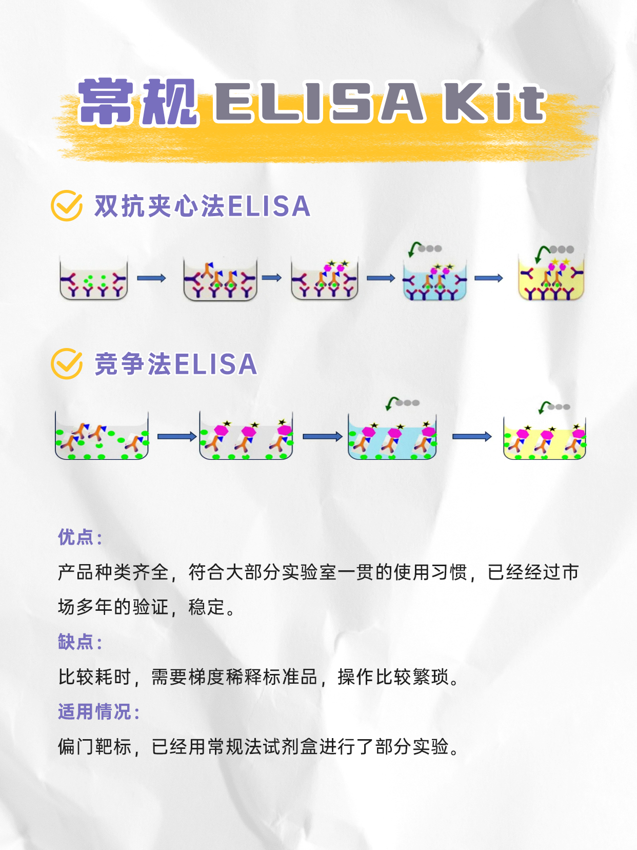 ELISA全稱為酶聯(lián)免疫吸附實(shí)驗(yàn),是一種基于抗原-抗體特異性結(jié)合的高靈敏度免疫檢測(cè)技術(shù),利用抗原與抗體的特異性結(jié)合,通過(guò)酶標(biāo)記物(如辣根過(guò)氧化物酶HRP或堿性磷酸酶ALP),再通過(guò)底物顯色反應(yīng)相對(duì)定量目標(biāo)分子。一般用酶標(biāo)儀測(cè)定吸光度(OD值)來(lái)反映抗原或抗體含量,靈敏度可高達(dá)皮克(pg)水平。由于酶的催化效率很高,間接地放大了免疫反應(yīng)的結(jié)果,使測(cè)定方法達(dá)到很高的敏感度。?
