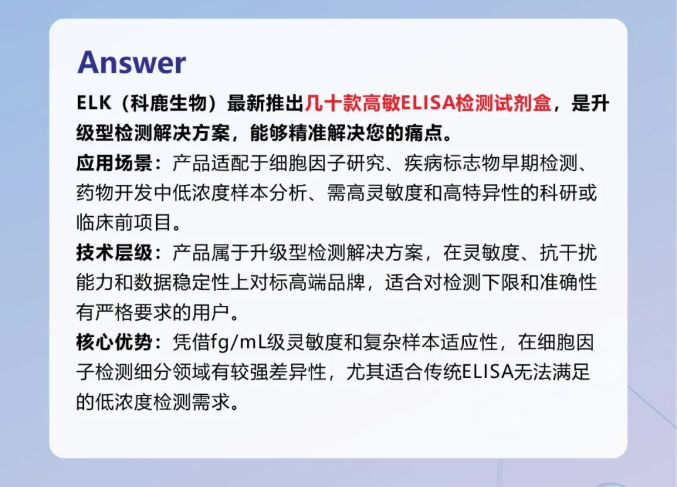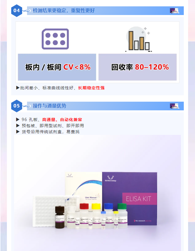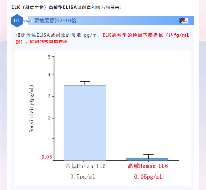 高敏型 ELISA 檢測試劑盒的核心優(yōu)勢在于檢出下限極低、數(shù)據(jù)更準(zhǔn)、適用更廣、 結(jié)果更穩(wěn),