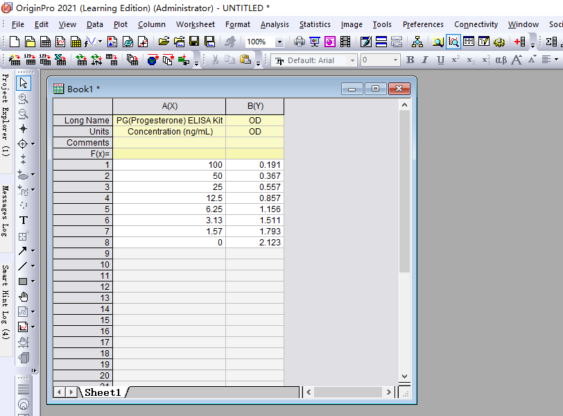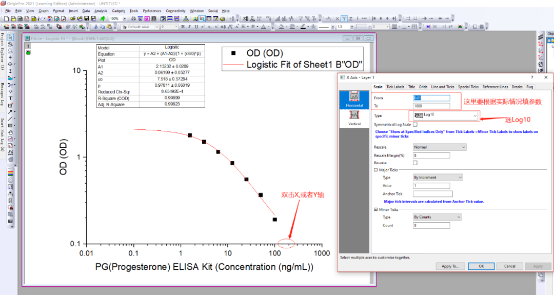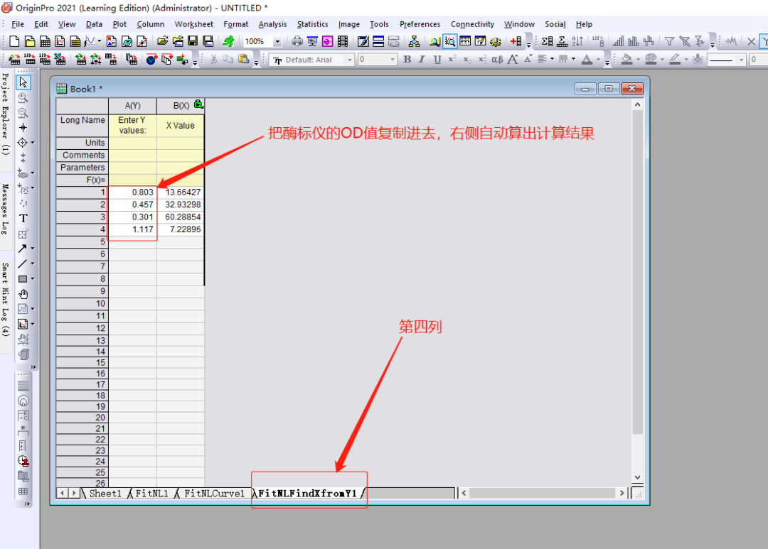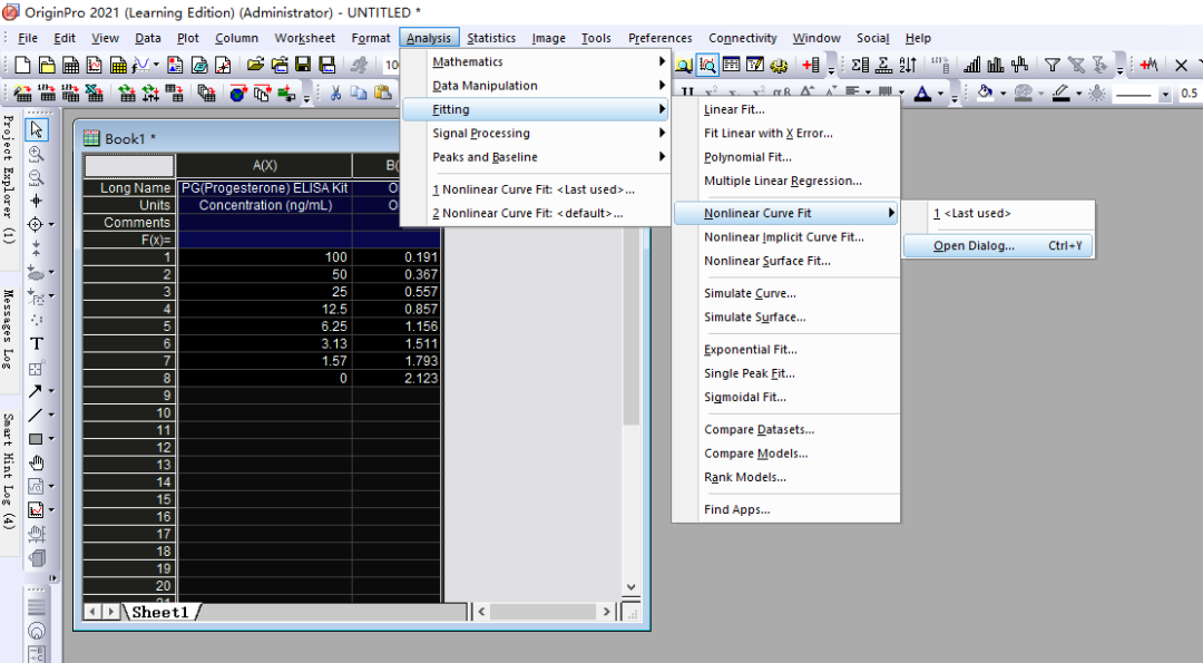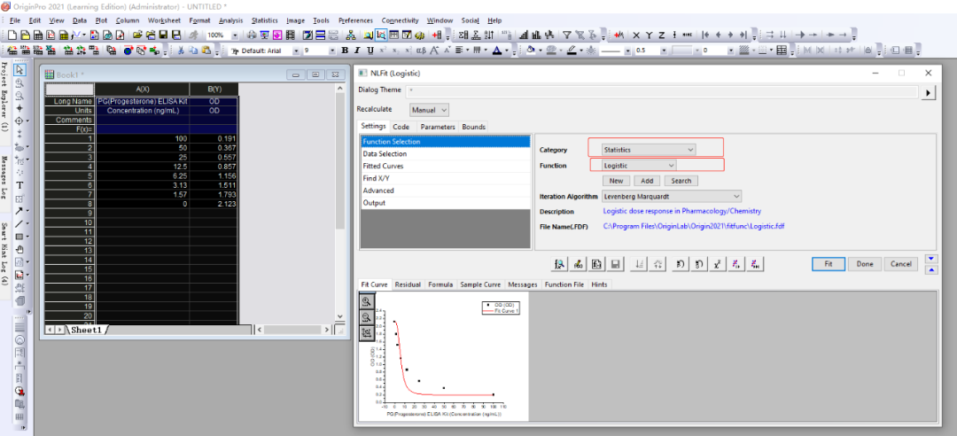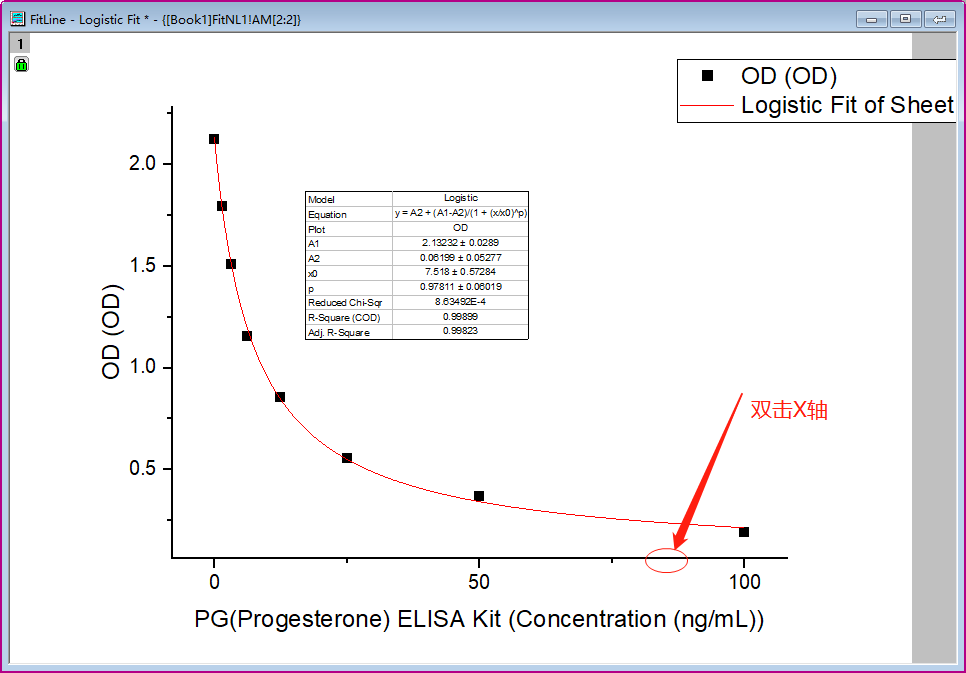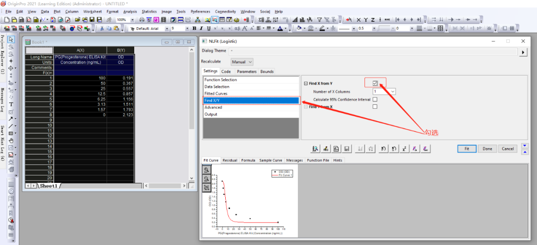 方法二: 使用OriginPro 2021軟件計(jì)算競爭法試劑盒ELISA結(jié)果