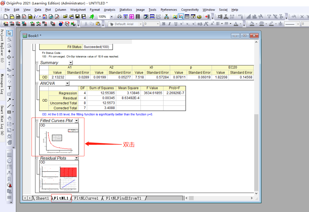 按下Ctrl+A鍵全選然后鼠標(biāo)依次單擊,Analysis---Fitting---Nonlinear Curve Fit---Open Dialog...