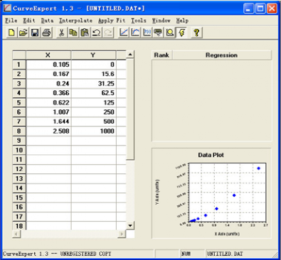方法一:使用Curve Expert1.4軟件(點(diǎn)擊下載Curve Expert1.4)