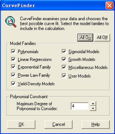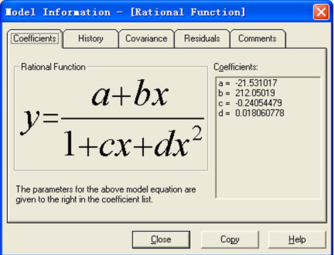 注意:選擇系數(shù)(即“r”值)最好的曲線方程來進(jìn)行運(yùn)算。在下面的對話框