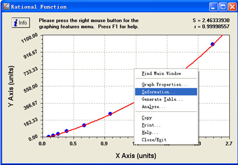 9. 如想得到ELISA擬合曲線的方程,可在步驟6的對話框空白處右擊,選擇”Information”