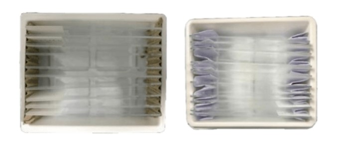 e. 強(qiáng)烈不建議使用添加瓦楞紙或自折Z形紙擺放石蠟切片,因運(yùn)輸過程中的碰撞會導(dǎo)致石蠟切片擠到一起,造成切片破損或樣本污染。