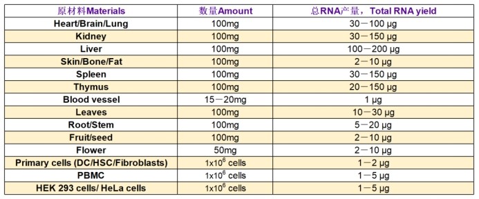 c. 表面含有較多蠟質(zhì)的植物樣本或次生代謝產(chǎn)物含量極高的植物組織或植物組織的莖和根及種子RNA得率通常會較低,為提高RNA的得率需要加大送樣量,為普通樣本送樣量的3-4倍。