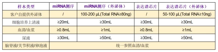 表達(dá)譜芯片及小RNA測序體液樣本及外泌體項目起始量(僅供參考)