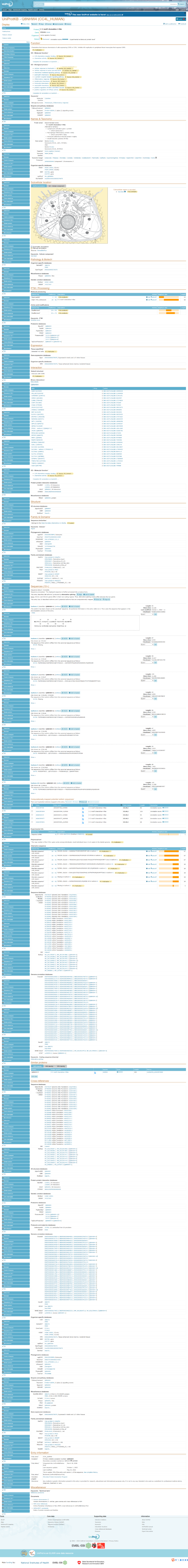 我們以HUMAN CCL4L2為例,搜索其在Uniprot數(shù)據(jù)庫(kù)中的信息,如下圖,頁(yè)面默認(rèn)顯示Entry模式,頁(yè)面顯示內(nèi)容包括:蛋白名稱、物種來(lái)源、GO功能注釋、亞細(xì)胞定位、組織特異性表達(dá)情況、互作蛋白、Domain、序列信息、同源蛋白以及其他數(shù)據(jù)鏈接等信息。