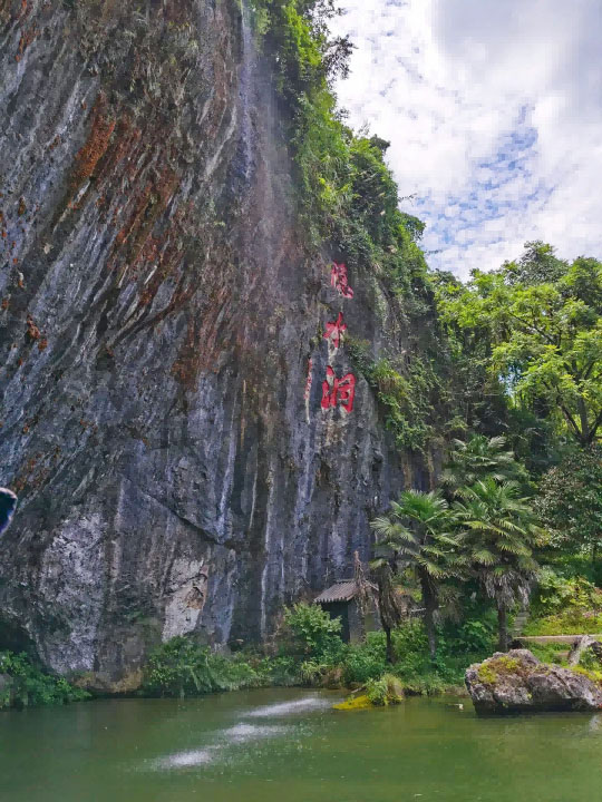 站在洞口,抬首仰望,“隱水洞”三個(gè)剛勁有力的大字鐫刻于一座巨石之上,從上面飛瀉的瀑布直落澤潭,落水擊石聚成小河,緩緩流入洞中。步入洞內(nèi),石筍、石幔、石幕、石瀑玲瓏剔透,溶洞、水流、瀑泉、乳石渾然一體。大自然的鬼斧神工讓人不得為之驚嘆,從心底越發(fā)地敬畏自然。自然界的智慧與本領(lǐng)浩瀚無垠,人類所能領(lǐng)悟的不過千萬分之一而已。在如此神奇的自然景象面前,我們不能不將心低到塵埃中去。即使我們是一群科研工作者,我們努力追求科學(xué)與真理,努力去揭示事物的本質(zhì),我們也并不一定比誰更懂得珍惜大自然的奧妙。其實(shí)科研工作者更需要對(duì)自然界懷有崇敬之心,這樣才能明白我們?cè)谔剿髯匀桓脑熳匀坏倪^程中必須“有所為,有所不為”。