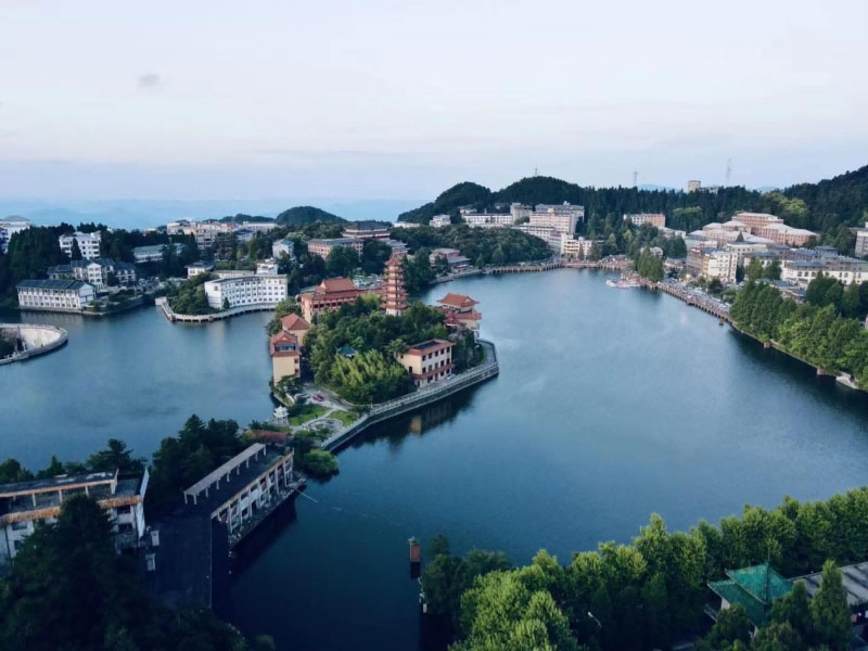 九宮山西連衡岳,東接匡廬,廣袤數(shù)百里,九宮山森林公園存有大片原始森林和第四紀(jì)冰川遺跡,內(nèi)有近千種名貴動(dòng)植物,近百種珍稀瀕危物種,被稱作景象萬千的“森林都市”景點(diǎn)。云中湖是九宮山鎮(zhèn)所在地,也是九宮山旅游的食宿基地。是一個(gè)以人文景觀為主的中心風(fēng)景區(qū),主要有青松迎客、泉崖噴雪(瀑布)、真君石殿、吳雄楚關(guān)、烏龜朝圣和銅鼓擂天。